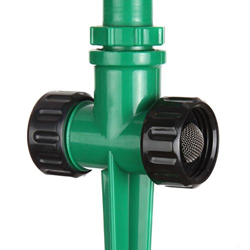QUICK AND EASY. Stakes securely in ground and attaches to your garden hose