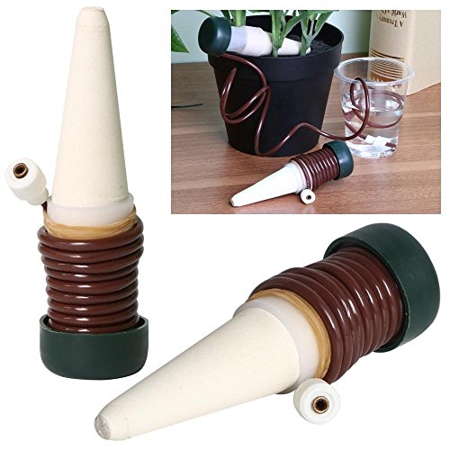 Better Than The Others – We’ve tried terracotta wine bottle stakes, ceramic stakes, and glass globes. They over water, make a mess, and ultimately kill your plants. So stick with the original, Aimini Plant Watering Stake.